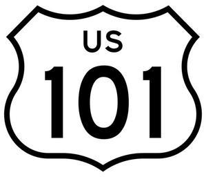 Keywords: US 101 (CA).svg 28 in by 24 in 711 mm by 610 mm California-style U S Route shield made to the specifications of the http //www dot ca gov/hq/traffops/signtech/signdel/specs/G26-2 pdf 2002 edition of Standard Highway Signs with 10 in 250 mm numerals Uses the http //www triskele com/fonts/index html Roadgeek fonts United States law does not permit the copyrighting of typeface designs and the fonts are meant to be copies of a U S Government-produced work anyway own SPUI spuiother Diagrams of California US route shields 101 SVG road signs in California 101 U S Route 101 in California 1961 cutout U S Highway shields 101 Three-digit U S Highway shields 101 101 number