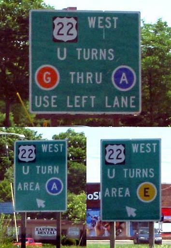 | Keywords: US 22 U turns.jpg extract image spuiphoto U-turns on US 22 in Union County New Jersey A is the easternmost one; these are the only signs eastbound Taken May 30 2004 by User SPUI road signs in New Jersey U S Route 22 in New Jersey U-turn road signs |