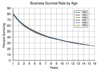 | Keywords: US business survival rate by age.svg en Business survival rate by number of years in business for businesses started from 1994 to 1999 Data from http //www bls gov/bdm/entrepreneurship/bdm_chart3 htm BLS 2016-03-09 own Delphi234 other versions Generated with Wikimedia SVG Chart SVG Chart/box cc-zero Statistics of the United States |