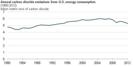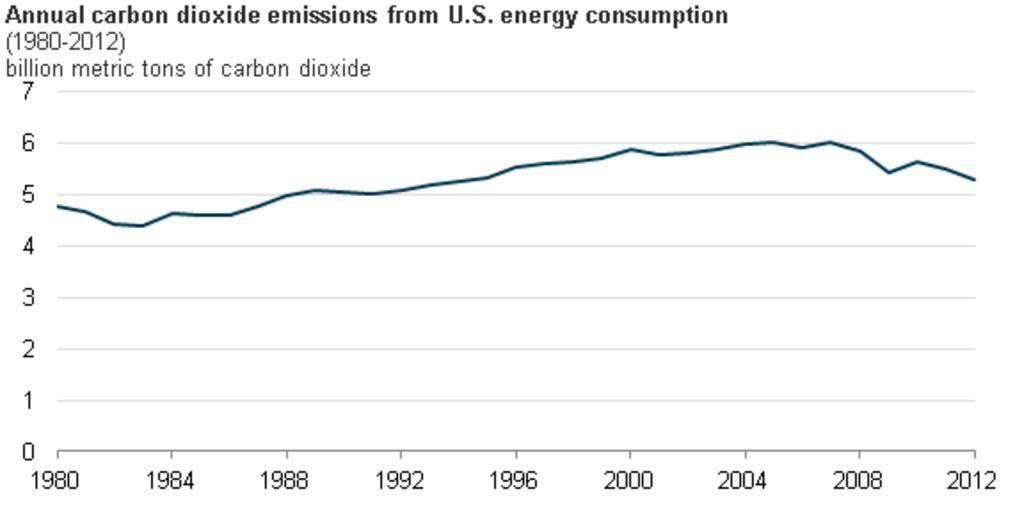 | Keywords: US CO2 Emissions 1980-2012.png en US energy-related carbon dioxide emissions 1980-2012 2013-04-16 12 00 56 http //www eia gov/todayinenergy/detail cfm id 10691 US Energy Information Administration PD-USGov Uploaded with UploadWizard Greenhouse emissions graph |