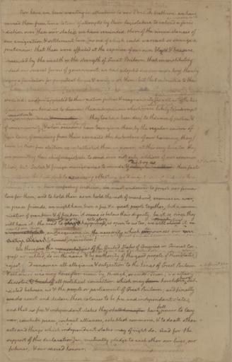Keywords: US Declaration of Independence draft 2.jpg US Declaration of Independence draft 2 jpg en Realizing the importance of the writing of the Declaration of Independence for the American Revolution and posterity Thomas Jefferson prepared his Notes of Proceedings in Congress June 7 “August 1 1776 He included a copy of the Declaration as it was presented to Congress on June 28 and amended by them in the days leading up to its final approval by Congress on July 4 1776 In 1781 James Madison asked Jefferson for his account of those tumultuous and pivotal days and Jefferson sent him these notes id Menyadari pentingnya penulisan Deklarasi Kemerdekaan untuk Revolusi Amerika dan generasi mendatang Thomas Jefferson mempersiapkan catatannya di Kongres 7 Juni sampai 1 Agustus 1776 Disertakan juga salinan dari Deklarasi Kemerdekaan yang dipersembahkan kepada Kongres pada 28 Juni dan diamandemen oleh mereka pada hari-hari menjelang persetujuan akhir dengan Kongres pada tanggal 4 Juli 1776 Pada 1781 James Madison meminta catatan milik Jefferson mengenai hari-hari penuh gejolak dan sangat penting dan Jefferson mengirimnya catatan ini http //myloc gov/Exhibitions/creatingtheus/DeclarationofIndependence/BattleJoined/ExhibitObjects/declarationroughdraft aspx U S Library of Congress Thomas Jefferson 1776 <gallery> File US Declaration of Independence draft 1 jpg Page 1 of the draft File US Declaration of Independence draft 3 jpg Page 3 of the draft File US Declaration of Independence draft 4 jpg Page 4 of the draft </gallery> PD-old-100 Draft of the United States Declaration of Independence |