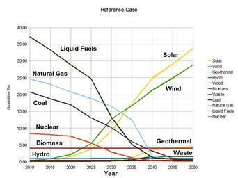 | Keywords: US energy consumption 2010-2050.png en US energy consumption 2010-2050 This file can and will be updated as better estimates and newer data become available 2012-09-03 own Delphi234 Data <PRE> Year Solar Wind Geothermal Hydro Wood Biomass Waste Coal NatGas Liquids Nuclear Total 2010 0 06 0 32 0 16 0 87 0 42 4 05 0 06 20 76 24 71 37 25 8 44 97 10 2015 0 25 0 87 0 17 0 88 0 42 4 05 0 07 18 77 23 03 33 32 8 03 89 85 2020 1 51 2 16 0 21 0 93 0 42 4 05 0 09 16 96 20 81 28 91 7 63 83 69 2025 3 73 5 38 0 35 0 98 0 42 4 05 0 15 13 13 18 81 24 82 5 60 77 40 2030 9 18 12 79 0 56 1 00 0 42 4 05 0 24 10 16 16 49 13 28 2 95 71 11 2035 17 39 16 69 1 38 1 00 0 42 4 05 0 60 6 00 12 47 5 16 1 16 66 32 2040 24 90 21 31 3 44 1 00 0 42 4 05 1 49 3 15 1 72 1 29 0 45 63 22 2045 29 13 24 93 3 99 1 00 0 42 4 05 1 50 1 03 0 78 0 80 0 24 67 88 2050 33 77 28 90 4 63 1 00 0 42 4 05 1 50 0 34 0 60 0 62 0 19 76 02 </PRE> cc-zero Uploaded with UploadWizard Energy statistics of the United States |