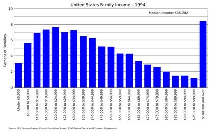 | Keywords: US family income 1994.svg en United States family income distribution for 1994 Data from US Census https //www census gov/data/tables/time-series/demo/income-poverty/cps-finc/finc-01 html FINC-01 2016-06-16 own Delphi234 other versions cc-zero Income distribution in the United States |