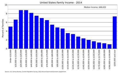 | Keywords: US family income 2014.svg en United States family income distribution for 2014 Data from US Census https //www census gov/data/tables/time-series/demo/income-poverty/cps-finc/finc-01 html FINC-01 2016-06-15 own Delphi234 other versions cc-zero Income distribution in the United States |