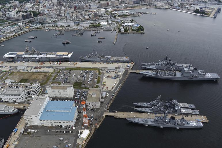 | Keywords: US Fleet Activities Sasebo aerial view June 2014.JPG en The U S Navy amphibious assault ship USS Bonhomme Richard LHD-6 left the Austin-class amphibious transport dock ship USS Denver LPD-9 the Whidbey Island-class amphibious dock landing ship USS Germantown LSD-42 and ships assigned to the Japan Maritime Self-Defense Force are moored at Fleet Activities Sasebo Japan Bonhomme Richard was undergoing a maintenance period 2014-06-19 140619-N-BJ178-111 Navy http //www navy mil/view_image asp id 177936 U S Navy photo by Mass Communication Specialist 2nd Class Michael Achterling PD-USGov-Military-Navy United States Fleet Activities Sasebo |