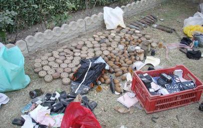 | Keywords: US, Iraqi troops uncover largest cache to date in Yarmouk DVIDS47467.jpg en A weapons cache found June 13 2007 contained 113 land mines 63 grenades three rockets three mortars two gas masks five washing machine timers more than 2000 rounds of AK-47 ammunition and seven boxes of various electronics and other assorted explosives It is the largest weapons cache discovery by either U S or Iraqi forces to date in the western Baghdad neighborhood of Yarmouk US Army photo by 1st Lt Patrick Henson 2nd Battalion 32nd Field Artillery Regiment 2007-06-18 https //www dvidshub net/image/47467 47467 2007-06-18 11 35 BAGHDAD IQ PD-USGov Gas masks Images from DoD uploaded by Fæ |