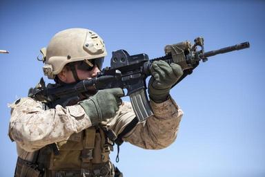 | Keywords: 26th meu 26thmeu a certain force in an uncertain world acertainforceinanuncertainworld afcent arcent cas centcom combat camera combatcamera comcam deployment eager lion 13 eagerlion13 force recon forcerecon jordanian armed forces jordanianarmedforces live fire livefire marcent mentorship navcent shooting soccent u.s. marines usmarines uscentcom jordan outdoor A 26th Marine Expeditionary Unit (MEU) Maritime Raid Force Marine engages simulated hostile targest during an immediate action drill at a range in Jordan, June 19, 2013. Exercise Eager Lion 2013 is an annual, multinational exercise designed to strengthen military-to-military relationships and enhance security and stability in the region by responding to modern-day security scenarios. The 26th MEU is deployed to the 5th Fleet area of responsibility as part of the Kearsarge Amphibious Ready Group. The 26th MEU operates continuously across the globe, providing the president and unified combatant commanders with a forward-deployed, sea-based quick reaction force.(U.S. Marine Corps photograph by Sgt. Christopher Q. Stone, 26th MEU Combat Camera/Released) Photo courtesy of USMC. In public domain. A 26th Marine Expeditionary Unit (MEU) Maritime Raid Force Marine engages simulated hostile targest during an immediate action drill at a range in Jordan, June 19, 2013. Exercise Eager Lion 2013 is an annual, multinational exercise designed to strengthen military-to-military relationships and enhance security and stability in the region by responding to modern-day security scenarios. The 26th MEU is deployed to the 5th Fleet area of responsibility as part of the Kearsarge Amphibious Ready Group. The 26th MEU operates continuously across the globe, providing the president and unified combatant commanders with a forward-deployed, sea-based quick reaction force.(U.S. Marine Corps photograph by Sgt. Christopher Q. Stone, 26th MEU Combat Camera/Released) Photo courtesy of USMC. In public domain. |