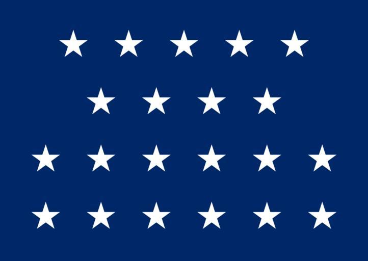 | Keywords: US Naval Jack 21 stars.svg US Naval jack with 21 stars In use July 4 1819 “July 3 1820 Self created based on code from Image US flag 21 stars svg 2006-10-04 own assumed Dual Freq See also Image US flag 21 stars svg Naval jacks of the United States 38 Flags with more than twenty stars Flags with white five-pointed stars SVG flags - historical of the United States |