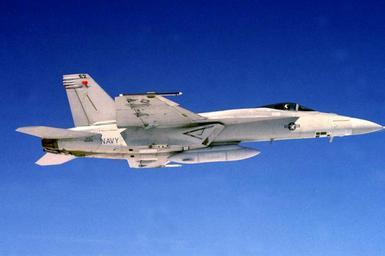 | Keywords: US Navy 020000-N-XXXXH-001 F-A-18E Super Hornet with SHARP Pod attached.jpg en Patuxent River MD -- File photo of an F/A-18E Super Hornet outfitted with a Shared Reconnaissance Pod SHARP carried under the aircraft at its centerline Designed and developed by Raytheon for the U S Navy to support advanced day and night all-weather tactical reconnaissance missions The system is scheduled for full deployment aboard the aircraft carrier USS Nimitz CVN 68 in 2003 SHARP will replace an existing system used to provide tactical air reconnaissance for U S Navy carrier-based air wings currently supported by the older F-14 Tomcat fighter aircraft U S Navy photo by Randy Hepp RELEASED 020000-N-XXXXH-001 Navy http //www navy mil/view_image asp id 1809 U S Navy photo by Randy Hepp PD-USGov-Military-Navy F/A-18E Super Hornet in flight Shared Reconnaissance Pod SHARP |
