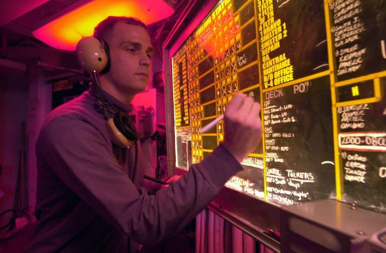 MAKE A MEME View Large Image Navy 020202-N-4768W-097 Fuel Control Board CVN 74.jpg en 020202-N-4768W-064 At sea aboard USS John C Stennis Feb 2 2002 -- Aviation Boatswain's Mate Fuels 3rd Class Brent Christensen from Fullerton Neb updates the aircraft fuel status board ...