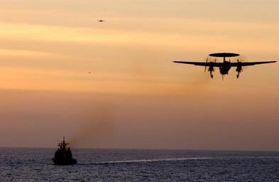 | Keywords: US Navy 020223-N-2722F-021 Aircraft return to ship.jpg en 020223-N-2722F-021 At sea aboard the aircraft carrier USS John C Stennis CVN 74 Feb 22 2002 -- The U S Navy guided-missile cruiser USS Port Royal CG 73 operates as the ship s plane guard astern of the ships flight deck as an E-2C Hawkeye and other aircraft assigned to Carrier Air Wing Nine CVW-9 line-up as they prepare to make arrested landings aboard ship John C Stennis its battle group are conducting combat missions over Afghanistan in support of Operation Enduring Freedom U S Navy photo by Photographer's Mate 2nd Class James Farrally II RELEASED 2002-02-22 020223-N-2722F-021 Navy http //www navy mil/view_image asp id 854 U S Navy photo by Photographer's Mate 2nd Class James Farrally II PD-USGov-Military-Navy 22 February February 2002 in the United States February 2002 photographs Aboard USS John C Stennis CVN-74 Northrop Grumman E-2C Hawkeye aircraft carrier landings War in Afghanistan 2001-present related operations outside of Afghanistan Operation Enduring Freedom in 2002 Aircraft at sunset |