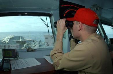 | Keywords: US Navy 020227-N-0376S-004 USS Stennis - OOD.jpg en 020227-N-0376S-004 At sea aboard USS John C Stennis CVN 74 Feb 27 2002 -- Officer of the Deck Lt Oscar Moreno from Brownsville TX scans the horizon to ensure safe passage during flight operations John C Stennis and Carrier Air Wing Nine CVW-9 are conducting combat missions in support of Operation Enduring Freedom U S Navy photo by Photographer's Mate 2nd Class Kimara Scott RELEASED 2002-02-27 020227-N-0376S-004 Navy http //www navy mil/view_image asp id 889 U S Navy photo by Photographer's Mate 2nd Class Kimara Scott PD-USGov-Military-Navy Operation Enduring Freedom in 2002 Military people in 2002 February 2002 in the United States Aboard USS John C Stennis CVN-74 February 2002 photographs Sailors at sea Taken with Nikon D1H Personality rights |