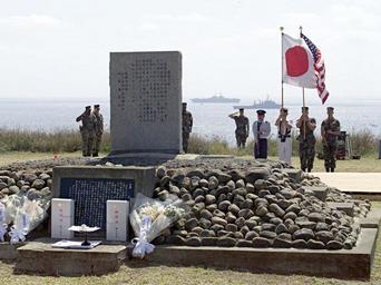 | Keywords: US Navy 020314-N-8590G-001 Iwo Jima commemoration.jpg en The South Pacific island of Iwo Jima Mar 14 2002 -- A combined Japanese and American color guard present their country s flag during the 57th Anniversary Commemoration of the Battle of Iwo Jima Ships from the USS Essex LHD 2 Amphibious Ready Group ARG are participating in ceremonies and support functions The Essex ARG is forward deployed to Sasebo Japan U S Navy photo by Photographer's Mate Airman Gary B Granger RELEASED 2002-03-14 020314-N-8590G-001 Navy http //www navy mil/view_image asp id 1033 U S Navy photo by Photographer's Mate Airman Gary B Granger Photographs of flags of the United States Photographs of flags of Japan Images from US Navy location Iwo Jima Japan Color guards of the United States Ceremonies of the United States Marine Corps PD-USGov-Military-Navy March 2002 photographs |