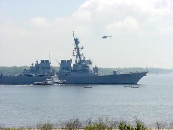 | Keywords: US Navy 020419-N-0000B-002 USS Cole leaves Pascagoula, MS.jpg en Northrop Grumman Ship Systems Ingalls Operations Pascagoula MS Apr 19 2002 The guided missile destroyer USS Cole DDG 67 heads out to sea to rejoin the U S Navy fleet following 14 months of repairs after a terrorist bomb blew a hole in the port side of the ship while refueling in the port city of Aden Yemen on Oct 12 2000 killing 17 sailors Pascagoula area pleasure fishermen out in their boats helped escort the Cole out to sea U S Navy photo by Stacey Byington RELEASED 2002-04-19 020419-N-0000B-002 Navy http //www navy mil/view_image asp id 1304 U S Navy photo by Stacey Byington PD-USGov-Military-Navy Northrop Grumman Shipbuilding Pascagoula General views of USS Cole DDG-67 |