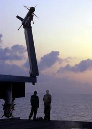 | Keywords: US Navy 020419-N-3397A-007 USS Kennedy - sunrise on the flight deck.jpg en At sea aboard USS John F Kennedy CV 67 Apr 19 2002 -- Two sailors watch the sunrise from the flight deck between flight operations Kennedy and her embarked Carrier Air Wing Seven CVW-7 are conducting combat missions over Afghanistan in support of Operation Enduring Freedom U S Navy photo by Photographer's Mate Airman Apprentice Ruben U Apodaca RELEASED 2002-04-19 020419-N-3397A-007 Navy http //www navy mil/view_image asp id 1333 U S Navy photo by Photographer's Mate Airman Apprentice Ruben U Apodaca PD-USGov-Military-Navy Personality rights April 2002 photographs Aboard USS John F Kennedy CV-67 United States Navy in the War in Afghanistan 2001-present War in Afghanistan 2001-present related operations outside of Afghanistan Operation Enduring Freedom in 2002 Military people in 2002 April 2002 in the United States 19 April Military people on duty Male soldiers Men at work |