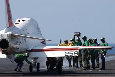 | Keywords: US Navy 020511-N-1058W-519 T-45 Goshawk make final preparations for launch.jpg en At sea aboard USS Harry S Truman CVN 75 May 11 2002 -- Flight deck personnel direct a T-45 Goshawk over one of four steam driven catapult systems aboard the aircraft carrier while making final preparations for launch T-45 aircraft are used for intermediate and advanced portions of the Navy/Marine Corps pilot training program for jet carrier aviation and tactical strike mission instruction Truman is conducting carrier qualifications off the East coast of the United States U S Navy photo by Photographer's Mate 2nd Class Dwain Willis RELEASED 2002-05-11 020511-N-1058W-519 Navy http //www navy mil/view_image asp id 1556 U S Navy photo by Photographer's Mate 2nd Class Dwain Willis PD-USGov-Military-Navy Aboard USS Harry S Truman CVN-75 McDonnell Douglas T-45 Goshawk May 2002 photographs |