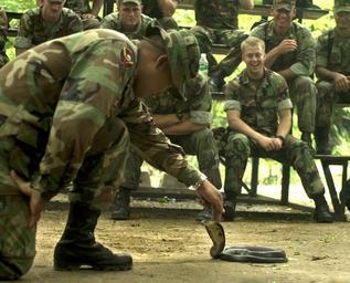 | Keywords: US Navy 020517-N-4309A-006 Thai Military - Jungle Survival Training.jpg en Ban Chan Khrem Thailand May 17 2002 -- Marines assigned to Battalion Landing Team 3rd Battalion 5th Marine Regiment BLT 3/5 the ground combat element of the 31st Marine Expeditionary Unit MEU Special Operations Capable SOC based in Okinawa Japan take part in a jungle survival training given by local Thai military during Exercise Cobra Gold 2002 Cobra Gold 2002 is the 21st U S Pacific Command exercise conducted in Thailand demonstrating the ability of U S Forces to deploy rapidly and conduct joint-combined operations with the Thai and Singapore armed forces U S Navy photo by Photographer s Mate 2nd Class Aaron Ansarov RELEASED 2002-05-17 020517-N-4309A-006 JPG Navy http //www navy mil/view_image asp id 1570 U S Navy photo by Photographer s Mate 2nd Class Aaron Ansarov PD-USGov-Military-Navy Images from US Navy location Ban Chan Khrem Thailand Cobra Gold 2002 May 2002 photographs Unidentified Elapidae |