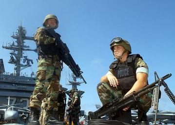 | Keywords: US Navy 020624-N-6747H-001 Aviation Ordnanceman 3rd Class Richard Barreto from New York, NY, and Master-at-Arms 2nd Class Sean Phelps from Detroit, MI.jpg en At sea aboard USS George Washington CVN 73 Jun 24 2002 -- Aviation Ordnanceman 3rd Class Richard Barreto left from New York NY and Master-at-Arms 2nd Class Sean Phelps right from Detroit MI search for simulated hostile targets during a SWARM exercise on the ship s flight deck SWARM exercises simulate countermeasures during multiple small boat attacks George Washington is based in Norfolk VA and is on a scheduled six-month deployment in support of Operation Enduring Freedom U S Navy photo by Photographer's Mate 3rd Class Heather Hess RELEASED 2002-06-24 020624-N-6747H-001 Navy http //www navy mil/view_image asp id 1796 U S Navy photo by Photographer's Mate 3rd Class Heather Hess PD-USGov-Military-Navy June 2002 photographs 24 June Aboard USS George Washington CVN-73 Aviation Ordnanceman Battle Dress Uniform in 2002 June 2002 in the United States M16 rifle with M203 M60 machine gun Males with M203 Male soldiers Master-at-arms Military people in 2002 PASGT Personality rights |