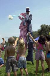 | Keywords: US Navy 020704-N-9774H-006 4th of July in Gaeta, Italy.jpg en Gaeta Italy Jul 4 2002 -- Children from U S Navy families assigned to Commander Sixth Fleet the Command Ship USS La Salle AGF 3 Naval Support Activity Gaeta and civilians from the local community were treated to balloon animals and flowers from the tallest patriot at the 4th of July celebration held at Gaeta Italy's Olde Mill Inn U S Navy photo by Photographer's Mate 2nd Class Jordan Hawks RELEASED 2002-07-04 020704-N-9774H-006 Navy http //www navy mil/view_image asp id 1866 U S Navy photo by Photographer's Mate 2nd Class Jordan Hawks PD-USGov-Military-Navy Photographs taken on 2002-07-04 People in 2002 Fashion in 2002 Naval Support Activity Naples Detachment Gaeta 4th of July Celebration 2002 Stilters United States flag clothing Children of the United States July 2002 in Italy Aboard USS La Salle AGF-3 Personality rights |