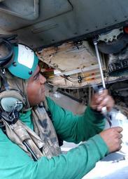 | Keywords: US Navy 020725-N-1280S-004 Sailor conducting maintenance on an F-14 Tomcat on the ship's flight deck.jpg en At sea aboard USS George Washington CVN 73 Jul 25 2002 -- Aviation Machinist's Mate 3rd Class Moosen Vargan from Miami FL performs maintenance on an F-14 Tomcat Washington and her battlegroup are on a regularly scheduled deployment conducting missions in support of Operation Enduring Freedom U S Navy photo by Photographer's Mate Airman Lindsay Switzer RELEASED 2002-07-25 020725-N-1280S-004 Navy http //www navy mil/view_image asp id 2096 U S Navy photo by Photographer's Mate Airman Lindsay Switzer PD-USGov-Military-Navy Aboard USS George Washington CVN-73 F-14 Tomcat maintenance July 2002 photographs |