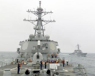 | Keywords: US Navy 020730-N-5067K-002 USS Benforld (DDG 65) and USS Fitzgerald prepare for an underway replenishment.jpg en At sea aboard USS Benfold DDG 65 Jul 30 2002 -- Sailors aboard the guided missile destroyer prepare for an underway replenishment UNREP while the destroyer USS Fitzgerald DDG 62 prepares to take station alongside Benfold Both vessels are participating in Fleet Battle Experiment Juliet FBE-J in the Pacific Ocean FBE-J is part of training exercises supporting Millennium Challenge 2002 MC-02 the nation's premier joint integrating event bringing together both live field exercises and computer simulations throughout the Department of Defense U S Navy photo by Photographer s Mate 2nd Class Michael D Kennedy RELEASED 2002-07-30 020730-N-5067K-002 Navy http //www navy mil/view_image asp id 2159 U S Navy photo by Photographer s Mate 2nd Class Michael D Kennedy PD-USGov-Military-Navy July 2002 photographs 30 July Aboard USS Benfold DDG-65 Coming alongside underway replenishment Millennium Challenge 2002 Aboard USS Fitzgerald DDG-62 July 2002 in the United States Military people in 2002 |