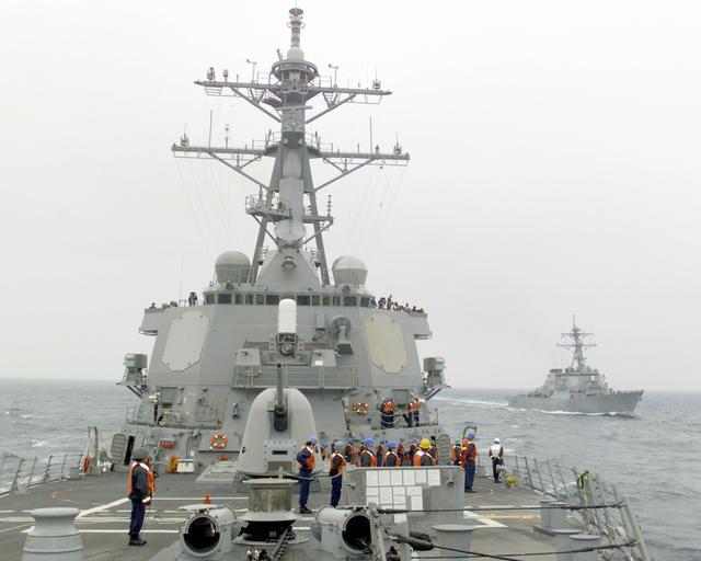 Keywords: US Navy 020730-N-5067K-002 USS Benforld (DDG 65) and USS Fitzgerald prepare for an underway replenishment.jpg en At sea aboard USS Benfold DDG 65 Jul 30 2002 -- Sailors aboard the guided missile destroyer prepare for an underway replenishment UNREP while the destroyer USS Fitzgerald DDG 62 prepares to take station alongside Benfold Both vessels are participating in Fleet Battle Experiment Juliet FBE-J in the Pacific Ocean FBE-J is part of training exercises supporting Millennium Challenge 2002 MC-02 the nation's premier joint integrating event bringing together both live field exercises and computer simulations throughout the Department of Defense U S Navy photo by Photographer s Mate 2nd Class Michael D Kennedy RELEASED 2002-07-30 020730-N-5067K-002 Navy http //www navy mil/view_image asp id 2159 U S Navy photo by Photographer s Mate 2nd Class Michael D Kennedy PD-USGov-Military-Navy July 2002 photographs 30 July Aboard USS Benfold DDG-65 Coming alongside underway replenishment Millennium Challenge 2002 Aboard USS Fitzgerald DDG-62 July 2002 in the United States Military people in 2002 |