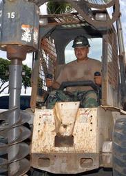 | Keywords: US Navy 020821-N-0106C-001 Seabees make improvements to golf course at Pearl Harbor.jpg en Pearl Harbor Hawaii Aug 21 2002 -- Builder 3rd Class Ismael Rodriquez of Construction Battalion Unit 413 CBU digs a hole for a fence post while making improvements at the Navy-Marine Golf Course Construction Battalion 413 has earned the Bronze Hammer award for outstanding service for the second year in a row U S Navy photo by Journalist 2nd Class Daniel J Calderon RELEASED 2002-08-21 020821-N-0106C-001 Navy http //www navy mil/view_image asp id 2430 U S Navy photo by Journalist 2nd Class Daniel J Calderon PD-USGov-Military-Navy People at Pearl Harbor 2002 in Pearl Harbor Images from US Navy location Pearl Harbor Hawaii August 2002 photographs August 2002 in the United States Military people in 2002 2002 in Hawaii Men at work in the United States Men with hard hats Military people on duty Battle Dress Uniform in 2002 Bobcat vehicles 21 August Male soldiers Photographs of sitting men Personality rights |