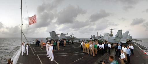 | Keywords: US Navy 020911-N-9851B-001 USS Harry S. Truman (CVN 75) raises the.jpg en At sea aboard USS Harry S Truman CVN 75 Sep 11 2002 -- Sailors raise the Navy Jack at morning colors in commemoration of the events of September 11 2001 on the first observance of Patriot Day Under direction of the Secretary of the Navy Gordon R England all U S Navy ships will fly the Navy Jack in place of the Union Jack for the duration of the war on terrorism The Navy Jack is a flag consisting of a rattlesnake superimposed across 13 horizontal alternating red and white stripes with the motto Don t Tread on Me Attending the sunrise flag raising aboard the Truman are right to left Captain Michael R Groothousen Commanding Officer Captain Ted Carter Executive Officer Commander Alan Baker Command Chaplain and Command Master Chief Steve Markum U S Navy photo by Photographer's Mate 2nd John L Beeman RELEASED 2002-09-11 020911-N-9851B-001 Navy http //www navy mil/view_image asp id 2630 U S Navy photo by Photographer's Mate 2nd John L Beeman PD-USGov-Military-Navy Aboard USS Harry S Truman CVN-75 Michael R Groothousen Walter E Carter Jr Alan T Baker First anniversary of the September 11 2001 attacks |