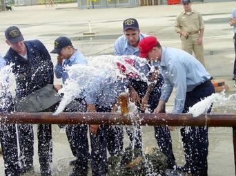 | Keywords: US Navy 021011-N-0625G-005 A pipe-patching contest.jpg en Mayport Fla Oct 11 2002 -- Damage Controlmen from aboard the guided missile frigate USS Samuel B Roberts FFG 58 and the guided missile cruiser USS Gettysburg CG 64 fight to plug up holes during a pipe-patching contest The contest was a part of the Surface Navy Olympics Week a deck/seamanship competition held in October The Surface Navy Association hosted the event designed to promote good will and comradery between all commands located in Mayport U S Navy photo Paige Gnann RELEASED 2002-10-11 021011-N-0625G-005 Navy http //www navy mil/view_image asp id 2967 Paige Gnann PD-USGov-Military-Navy Men at work in the United States Military people on duty Images from US Navy location Duval County Florida Sailors from the United States Navy October 2002 photographs 2002 in Florida Military people in 2002 October 2002 in the United States Male soldiers Taken with Sony Cybershot Red caps |