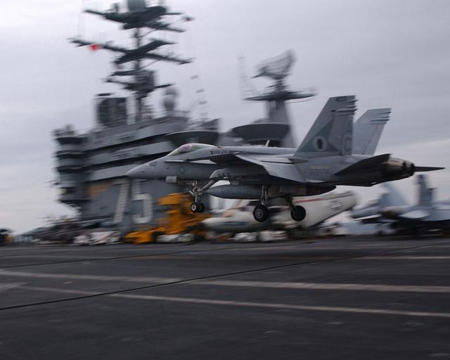 | Keywords: US Navy 021025-N-4953E-001 An F-A 18 'Hornet' assigned to the 'Gunslingers' of Strike Fighter Squadron One Zero Five (VFA-105), performs a 'touch and go' on the ship's flight deck.jpg en At sea aboard USS Harry S Truman CVN 75 -- An F/A 18 Hornet assigned to the Gunslingers of Strike Fighter Squadron One Zero Five VFA-105 performs a touch and go on the ship s flight deck Truman and Carrier Air Wing Three CVW-3 are participating in a Joint Task Force Exercise JTFEX preparing for their upcoming scheduled six-month deployment U S Navy photo by Photographer's Mate 3nd Class Danny Ewing Jr 021025-N-4953E-001 Navy http //www navy mil/view_image asp id 3151 U S Navy photo PD-USGov-Military-Navy F/A-18 Hornet in flight Aboard USS Harry S Truman CVN-75 Touch-and-go Strike Fighter Squadron 105 United States Navy Photographs by Danny Ewing Jr |