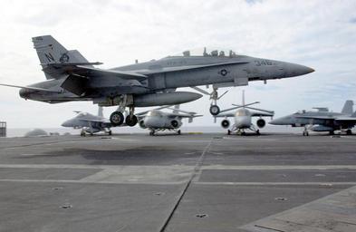 | Keywords: US Navy 021102-N-7265L-003 An F-A-18 ^ldquo,Hornet^rdquo, assigned to the ^ldquo,Rough Raiders^rdquo, of Strike Fighter Squadron One Two Five (VFA-125) keeps its tailhook up during carrier flight deck training exercises.jpg en At sea with USS Carl Vinson Nov 02 2002 -- An F/A-18 Hornet assigned to the Rough Raiders of Strike Fighter Squadron 125 VFA-125 keeps its tailhook up during carrier flight deck training exercises New pilots conduct touch and goes prior to attempting a full tailhook arrested landing on the ship s flight deck VFA-125 is stationed at Naval Air Station NAS Lemoore Calif U S Navy photo by Photographer's Mate 3rd Class Inez Lawson RELEASED 2002-11-02 021102-N-7265L-003 Navy http //www navy mil/view_image asp id 3198 U S Navy photo by Photographer's Mate 3rd Class Inez Lawson PD-USGov-Military-Navy F/A-18D Hornet in flight Strike Fighter Squadron 125 United States Navy Aboard USS Carl Vinson CVN-70 F/A-18 Hornet aircraft carrier landings |