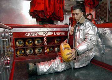 | Keywords: US Navy 021111-N-5362F-001 Airman John Daudlee from Queens, N.Y., inspects his emergency gear on the flight deck.jpg en At sea aboard USS Abraham Lincoln CVN 72 Nov 11 2002 -- Airman John Daudlee from Queens N Y inspects his emergency gear on the flight deck Daudlee is a member of the Abraham Lincoln's Crash and Salvage Team The Lincoln and Carrier Air Wing Fourteen CVW-14 are on a regularly scheduled six-month deployment conducting combat combat missions in support of Operation Enduring Freedom and Operation Southern Watch U S Navy photo by Photographer's Mate Airman Bernardo Fuller RELEASED 2002-11-11 021111-N-5362F-001 Navy http //www navy mil/view_image asp id 3350 U S Navy photo by Photographer's Mate Airman Bernardo Fuller PD-USGov-Military-Navy November 2002 photographs Military people in 2002 November 2002 in the United States 11 November Aboard USS Abraham Lincoln CVN-72 Personality rights |