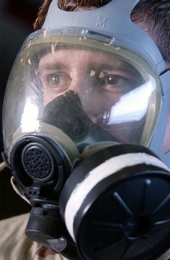 | Keywords: US Navy 021130-N-4142G-035 wearing a MCU-2P gas mask.jpg en At sea aboard USS Constellation CV 64 Nov 30 2002 -- Machinist Mate 3rd Class Gerald Spohrer wears his MCU-2P gas mask during Chemical Biological and Radiological defense training with the Advanced Protective Chemical Garment APCG in the hangar bay of the USS Constellation Constellation is currently on a regularly scheduled six-month deployment conducting combat missions in support of Operation Enduring Freedom U S Navy photo by Photographer s Mate 2nd Class Felix Garza Jr RELEASED 2002-11-30 021130-N-4142G-035 Navy http //www navy mil/view_image asp id 3503 U S Navy photo by Photographer s Mate 2nd Class Felix Garza Jr PD-USGov-Military-Navy Aboard USS Constellation CV-64 Males wearing gas masks MCU-2/P Protective Mask Photographs by Felix Garza Jr |