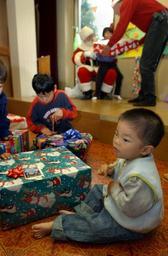 | Keywords: US Navy 021207-N-5961C-004 A young boy from the Elizabeth Saunders Home for orphans opens his Christmas present as Santa and his helper deliver another present to a very happy child in the background.jpg en Atsugi Japan Dec 7 2002 -- A young boy from the Elizabeth Saunders Home for orphans opens his Christmas present as Santa and his helper deliver another present to a very happy child in the background Both the U S Navy and Japanese Maritime Self Defense Force JMSDF Chief Petty Officer Associations CPOAs have sponsored the home by setting up festivities at Christmastime for years This year the CPOAs from both nations brought Santa to see the children and deliver their Christmas presents in person Both CPOAs work throughout the year helping the staff and faculty with projects around the grounds of the orphans' home as well as spending time with the children U S Navy photo by Chief Photographer's Mate Spike Call RELEASED 2002-12-07 021207-N-5961C-004 Navy http //www navy mil/view_image asp id 3620 U S Navy photo by Chief Photographer's Mate Spike Call PD-USGov-Military-Navy Images from US Navy location Atsugi Japan |