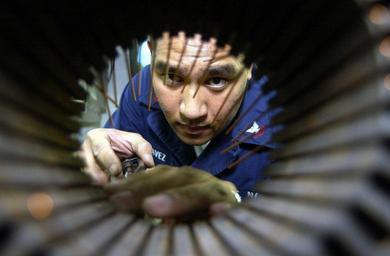 | Keywords: US Navy 021210-N-4142G-144 preparing the stator of a motor for rewinding.jpg en At sea aboard USS Constellation CV 64 Dec 10 2002 -- Electrician s Mate 2nd Class Ramon Chavez from San Diego Calif prepares the stator of a motor for rewinding Petty Officer Chavez routinely repairs motor equipment from ships within the Constellation Battle Group Constellation is on a regularly scheduled six-month deployment conducting missions in support of Operation Enduring Freedom U S Navy photo by Photographer s Mate 2nd Class Felix Garza Jr RELEASED 2002-12-10 021210-N-4142G-144 Navy http //www navy mil/view_image asp id 3718 U S Navy photo by Photographer s Mate 2nd Class Felix Garza Jr PD-USGov-Military-Navy Aboard USS Constellation CV-64 Photographs by Felix Garza Jr |