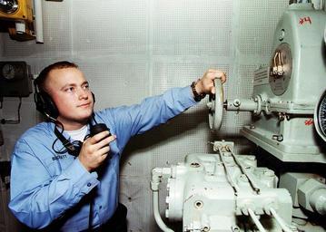 | Keywords: US Navy 030108-N-5786V-001 Fireman Philip Blodgett from Lewistown, Mont., uses sound powered communications to speak with the bridge aboard USS Theodore Roosevelt (CVN 71).jpg en At sea aboard USS Theodore Roosevelt CVN 71 Jan 8 2003 -- Fireman Philip Blodgett from Lewistown Mont uses sound powered communications to speak with the bridge while conducting rudder-timing swing checks in the ship s aft steering The aircraft carrier is underway conducting training operations in the Atlantic Ocean U S Navy photo by Photographer s Mate 2nd Class Angela M Virnig RELEASED 2003-01-08 030108-N-5786V-001 Navy http //www navy mil/view_image asp id 3980 U S Navy photo by Photographer s Mate 2nd Class Angela M Virnig PD-USGov-Military-Navy Aboard USS Theodore Roosevelt CVN-71 Photographs by Angela M Virnig January 2003 photographs |