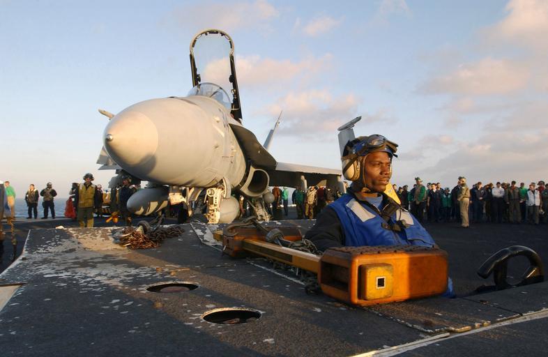 | Keywords: US Navy 030113-N-4953E-004 Airman Ricky Kelly taxies an F-A-18.jpg en At sea aboard USS Harry S Truman CVN 75 Jan 13 2003 -- Aviation Boatswain s Mate Airman Ricky Kelly taxies an F/A-18 Hornet during a Foreign Object Debris FOD Walkdown on the ship s flight deck Truman and Carrier Air Wing Three CVW 3 are currently on a six-month deployment conducting missions in support of Operation Enduring Freedom U S Navy photo by Photographer's Mate 3rd Class Danny Ewing Jr RELEASED 2003-01-13 030113-N-4953E-004 Navy http //www navy mil/view_image asp id 4017 U S Navy photo by Photographer's Mate 3rd Class Danny Ewing Jr PD-USGov-Military-Navy Aboard USS Harry S Truman CVN-75 Foreign Object Damage walk downs Photographs by Danny Ewing Jr |