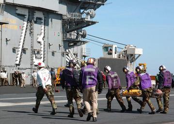 | Keywords: US Navy 030202-N-6278J-001 Rescue at sea aboard the USS George Washington CVN 73.jpg en At sea aboard USS George Washington CVN 73 Feb 2 2003 -- Flight deck crewmen and personnel assigned to the ship s medical department carry injured personnel across the ship s flight deck after four personnel were rescued from the burning merchant fishing vessel Diamond Shoal The fishing boat was off the coast of Jacksonville Fla at the time of the incident Five victims were recovered from the water with four survivors Two SH-60F Sea Hawk helicopters assigned to the Emerald Knights of Reserve Helicopter Anti-Submarine Squadron Seven Five HS-75 conducted the search and rescue SAR operation The Norfolk Va -based aircraft carrier is conducting carrier qualifications and training off the Atlantic coast U S Navy photo by Photographer's Mate Airman Joan Jennings RELEASED 2003-02-02 030202-N-6278J-001 Navy http //www navy mil/view_image asp id 4362 U S Navy photo by Photographer's Mate Airman Joan Jennings PD-USGov-Military-Navy Aboard USS George Washington CVN-73 SH-60F Oceanhawk |