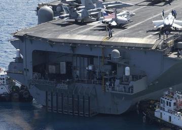 | Keywords: US Navy 030225-N-7293M-006 Sailors aboard the nuclear powered aircraft carrier USS Carl Vinson (CVN 70) raise the national ensign as the ship ties-up to Kilo Wharf in Apra Harbor during the first ever port call to Guam in the c.jpg en Santa Rita Guam Feb 25 2003 - Sailors aboard the nuclear powered aircraft carrier USS Carl Vinson CVN 70 raise the national ensign as the ship ties-up to Kilo Wharf in Apra Harbor during the first ever port call to Guam in the carrier's history Carl Vinson is on a regularly scheduled deployment in the Western Pacific Ocean U S Navy photo by Photographer's Mate 2nd Class Nathanael T Miller RELEASED 2003-02-25 030225-N-7293M-006 Navy http //www navy mil/view_image asp id 13291 U S Navy photo by Photographer's Mate 2nd Class Nathanael T Miller PD-USGov-Military-Navy Ships at Naval Base Guam Aboard USS Carl Vinson CVN-70 |