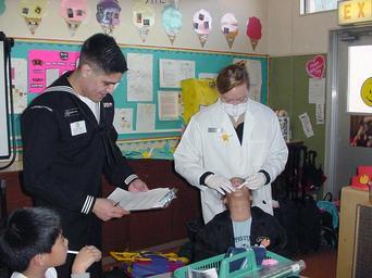 | Keywords: US Navy 030312-N-0000X-001 Dental Technician 3rd Class Omar Pereyra (Left) and Lt. Angela Estepp check a student^rsquo,s teeth during National Children^rsquo,s Dental Health Month.jpg en Naval Station Yokosuka Japan Mar 12 2003 -- Dental Technician 3rd Class Omar Pereyra Left and Lt Angela Estepp check a student s teeth during National Children s Dental Health Month National Children s Dental Health Month grew out of a one-day event in Cleveland Ohio in 1941 In 1949 the American Dental Association sponsored the first national observance of Children s Dental Health Day which was expanded to a weeklong program in 1955 and to the month of February in 1981 Today it is marked in communities across the country and armed service bases abroad U S Navy photo by Laurie Clark RELEASED 2003-03-12 030312-N-0000X-001 Navy http //www navy mil/view_image asp id 5111 U S Navy photo by Laurie Clark PD-USGov-Military-Navy Dentists at work United States Fleet Activities Yokosuka |