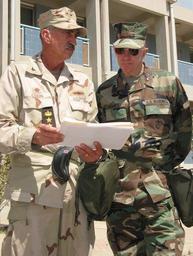 | Keywords: US Navy 030314-N-1050K-023 Capt. Donald P. Cook, U.S. Commander, Camp Patriot, provides an overall view of operations with Marine Lt. Gen. Gary H. Hughey, Deputy Commander, U.S. Transportation Command.jpg en Camp Patriot Kuwait Mar 14 2003 -- From left Capt Donald P Cook U S Commander Camp Patriot provides an overall view of operations with Marine Lt Gen Gary H Hughey Deputy Commander U S Transportation Command Hughey recently visited Camp Patriot with other theater leaders for a series of briefings Camp Patriot is a joint-service multi-national base housing members of the Army Navy Marine Corps Air Force and Coast Guard U S Navy photo by Journalist 1st Class Joseph Krypel RELEASED 2003-03-14 030314-N-1050K-023 Navy http //www navy mil/view_image asp id 5276 U S Navy photo by Journalist 1st Class Joseph Krypel PD-USGov-Military-Navy Camp Patriot |