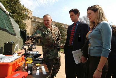 | Keywords: US Navy 030326-N-2383B-539 a static display set up by the 34th Virginia Guard, Weapons of Mass Destruction-Civil Support Teams.jpg en Sgt 1st Class Tomkinson shows off part of a static display set up by the 34th Virginia Guard Weapons of Mass Destruction-Civil Support Teams WMD-CST the latest hardware used in dealing with a possible Chemical Biological Radiological Nuclear or High-Yield Explosives CBRNE incidents in the center courtyard of the Pentagon U S Navy photo by Chief Photographer's Mate Johnny Bivera 2003-03-26 030326-N-2383B-539 Navy http //www navy mil/view_image asp id 5815 U S Navy photo by Chief Photographer's Mate Johnny Bivera PD-USGov-Military-Navy Terrorism in the United States Civil Support Team |