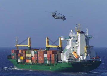 | Keywords: US Navy 030326-N-9867P-003 A CH-46 Sea Knight helicopter performs a vertical replenishment (VERTREP) with the supply ship Warnow Trader.jpg en The Gulf of Aden Mar 26 2003 -- A CH-46 Sea Knight helicopter performs a vertical replenishment VERTREP with the supply ship Warnow Trader while deployed Warnow Trader is using the supplies to feed the troops from the 2nd Army Division which is fighting in support of Operation Iraqi Freedom Mt Whitney and embarked Marines are deployed to the Horn of Africa region in support of Operation Enduring Freedom U S Navy photo by Photographer s Mate 3rd Class Scott Phillips RELEASED 2003-03-26 030326-N-9867P-003 Navy http //www navy mil/view_image asp id 5849 U S Navy photo by Photographer s Mate 3rd Class Scott Phillips PD-USGov-Military-Navy Vertical replenishment CH-46 Sea Knight Warnow Trader ship 1996 Operation Enduring Freedom in 2003 0326 Piracy in Somalia Operation Enduring Freedom Horn of Africa |