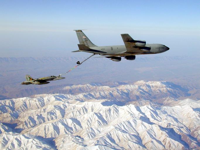| Keywords: US Navy 030402-N-0000X-101 An F-A-18 Hornet assigned to the ^lsquo,Silver Eagles^rsquo, of Marine Fighter-Attack Squadron One Fifteen (VMFA-115) conducts in flight refueling exercises with a KC-135 Stratotanker over Iraq.jpg en The Mediterranean Sea Apr 2 2003 -- An F/A-18 Hornet assigned to the Silver Eagles of Marine Fighter-Attack Squadron One Fifteen VMFA-115 conducts in flight refueling exercises with a KC-135 Stratotanker over Iraq USS Harry S Truman CVN 75 and CVW-3 are deployed conducting combat missions in support of Operation Iraqi Freedom the multi-national coalition effort to liberate the Iraqi people eliminate weapons of mass destruction and end he regime of Sadaam Hussein U S Navy photo RELEASED 2003-04-02 030402-N-0000X-101 Navy http //www navy mil/view_image asp id 6262 U S Navy photo PD-USGov-Military-Navy Aerial refueling of F/A-18 Hornet Boeing KC-135 Stratotanker |