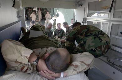 | Keywords: US Navy 030402-N-7438S-002 Members of the U.S. Air Force^rsquo,s 491st Expeditionary Air Evacuation Squadron and the U.S. Navy^rsquo,s Fleet Hospital Eight team up to carefully load wounded service members into an ambulance a.jpg en Rota Spain Apr 2 2003 -- Members of the U S Air Force s 491st Expeditionary Air Evacuation Squadron and the U S Navy s Fleet Hospital Eight team up to carefully load wounded service members into an ambulance aboard Naval Station Rota An Air Force C-5 Galaxy cargo plane transported 21 Operation Iraqi Freedom casualties from Kuwait to Rota for treatment at the field hospital Operation Iraqi Freedom is the multi-national coalition effort to liberate the Iraqi people eliminate Iraq s weapons of mass destruction and end the regime of Saddam Hussein U S Navy photo by Chief Journalist Dan Smithyman RELEASED 2003-04-02 030402-N-7438S-002 Navy http //www navy mil/view_image asp id 6266 U S Navy photo by Chief Journalist Dan Smithyman PD-USGov-Military-Navy People at Naval Station Rota |