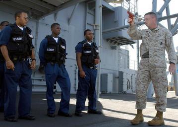 | Keywords: US Navy 030403-N-0466M-001 U.S. Marine SSgt Gregory Hoover from Waverly, N.Y., instructs members of the security force aboard USS Mount Whitney (LCC-JCC 20).jpg en The Gulf of Aden Apr 3 2003 -- U S Marine SSgt Gregory Hoover from Waverly N Y instructs members of the security force aboard USS Mount Whitney LCC/JCC 20 on proper gun-handling procedures Mount Whitney is deployed to the Horn of Africa region participating in Operation Enduring Freedom and the global war on terrorism U S Navy photo by Photographer s Mate 3rd Class Aida E Miranda RELEASED 2003-04-03 030403-N-0466M-001 Navy http //www navy mil/view_image asp id 6333 U S Navy photo by Photographer s Mate 3rd Class Aida E Miranda PD-USGov-Military-Navy Aboard USS Mount Whitney LCC-20 |