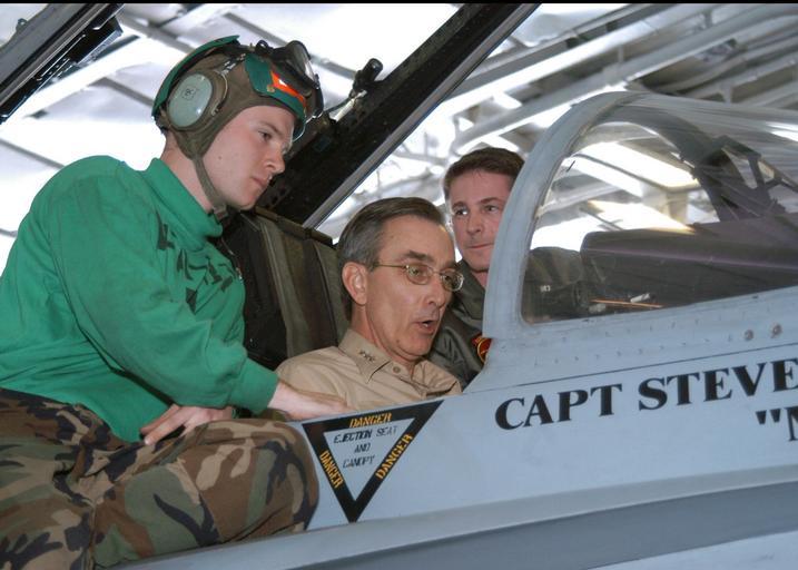 | Keywords: US Navy 030407-N-4154B-505 Vice Admiral Scott A. Fry is seated in the cockpit of an F-A-18C Hornet from the War Party of Strike Fighter Squadron Eighty Seven (VFA-87).jpg en The Mediterranean Sea Apr 7 2003 -- Vice Admiral Scott A Fry is seated in the cockpit of an F/A-18C Hornet from the War Party of Strike Fighter Squadron Eighty Seven VFA-87 Vice Admiral Fry asks questions of Green Shirt Aviation Electronics Technician 2nd Class Raymond Lape and Lieutenant Matthew Clay aboard USS Theodore Roosevelt CVN 71 Roosevelt and Carrier Air Wing Eight CVW-8 are deployed in support of Operation Iraqi Freedom the multi-national coalition effort to liberate the Iraqi people eliminate Iraq's weapons of mass destruction and end the regime of Saddam Hussein U S Navy photo by Photographer s Mate 3rd Class Matthew Bash RELEASED 2003-04-07 030407-N-4154B-505 Navy http //www navy mil/view_image asp id 6480 U S Navy photo by Photographer s Mate 3rd Class Matthew Bash PD-USGov-Military-Navy Aboard USS Theodore Roosevelt CVN-71 Sitting people Green shirts Scott A Fry |