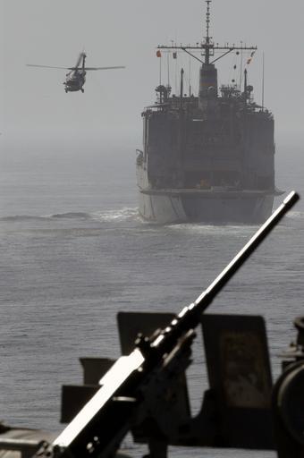 | Keywords: US Navy 030408-N-9593M-022 An MH-60S Knight Hawk assigned to the ^ldquo,Providers of Helicopter Combat Support Squadron Five (HC-5) flies toward USS Abraham Lincoln (CVN 72).jpg  en The North Arabian Sea Apr 8 2003 -- An MH-60S Knight Hawk assigned to the Providers of Helicopter Combat Support Squadron Five HC-5 flies toward USS Abraham Lincoln CVN 72 after dropping off cargo on the Military Sealift Command ship USNS Kiska T-AE 35 during a Vertical Replenishment VERTREP Lincoln and Carrier Air Wing Fourteen CVW-14 recently completed combat operations in support of Operation Iraqi Freedom after being relieved on station by USS Nimitz Carrier Strike Group Operation Iraqi Freedom is the multi-national coalition effort to liberate the Iraqi people eliminate Iraq's weapons of mass destruction and end the regime of Saddam Hussein U S Navy photo by Photographer's Mate 3rd Class Philip A McDaniel RELEASED 2003-04-08 030408-N-9593M-022 Navy http //www navy mil/view_image asp id 6591 U S Navy photo by Photographer's Mate 3rd Class Philip A McDaniel PD-USGov-Military-Navy USNS Kiska T-AE-35 Vertical replenishment MH-60S Seahawk Stern views of watercraft |