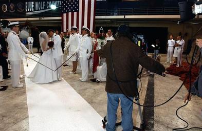 | Keywords: US Navy 030501-N-3236B-009 Lt. David Kozminskiand his new wife walk down the white carpet while military honors are rendered after the couple are married within the squadron's hangar.jpg en Naval Air Station North Island Calif May 1 2003 -- Lt David Kozminski from Grand Rapids Mich a Navy pilot assigned to the Blue Wolves of Sea Control Squadron Thirty Five VS-35 and his new wife walk down the white carpet while military honors are rendered after the couple are married within the squadron's hangar The wedding was televised live on the national network television show Good Morning America and took place one day after Lt Kozminski's return from a nearly ten-month deployment VS-35 had been deployed aboard USS Abraham Lincoln CVN 72 in support of Operation Iraqi Freedom the multi-national coalition effort to liberate the Iraqi people eliminate Iraq s weapons of mass destruction and end the regime of Saddam Hussein U S Navy photo by Photographer's Mate 1st Class Ted Banks RELEASED 2003-05-01 030501-N-3236B-009 Navy http //www navy mil/view_image asp id 7272 U S Navy photo by Photographer's Mate 1st Class Ted Banks PD-USGov-Military-Navy Naval Air Station North Island in the 2000s Aboard USS Abraham Lincoln CVN-72 Good Morning America |