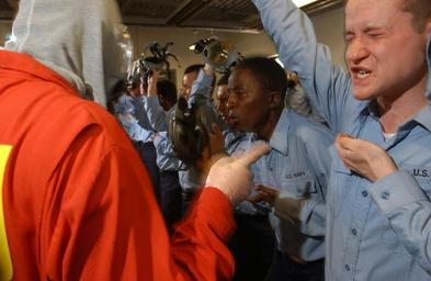 | Keywords: US Navy 030509-N-5862D-164 Navy instructor, Damage Controlman 2nd Class, Shawn Love exposes a division of recruits to tear gas as they remove their Gas Mask (MCU-2-P).jpg en Recruit Training Command Great Lakes Ill May 9 2003 - Navy instructor Damage Controlman 2nd Class Shawn Love exposes a division of recruits to tear gas as they remove their Gas Mask MCU-2/P The staff teaches the students how to don their Gas Masks properly and then have them remove their masks and recite their name and social security number This teaches the recruits to have confidence in their equipment and in the training which could be needed if they are exposed to chemical and biological weapons of mass destruction U S Navy photo by Chief Photographer's Mate Chris Desmond RELEASED 2003-05-09 030509-N-5862D-164 Navy http //www navy mil/view_image asp id 11844 U S Navy photo by Chief Photographer's Mate Chris Desmond PD-USGov-Military-Navy Recruit Training Command Great Lakes Illinois Damage Controlman MCU-2/P Protective Mask |
